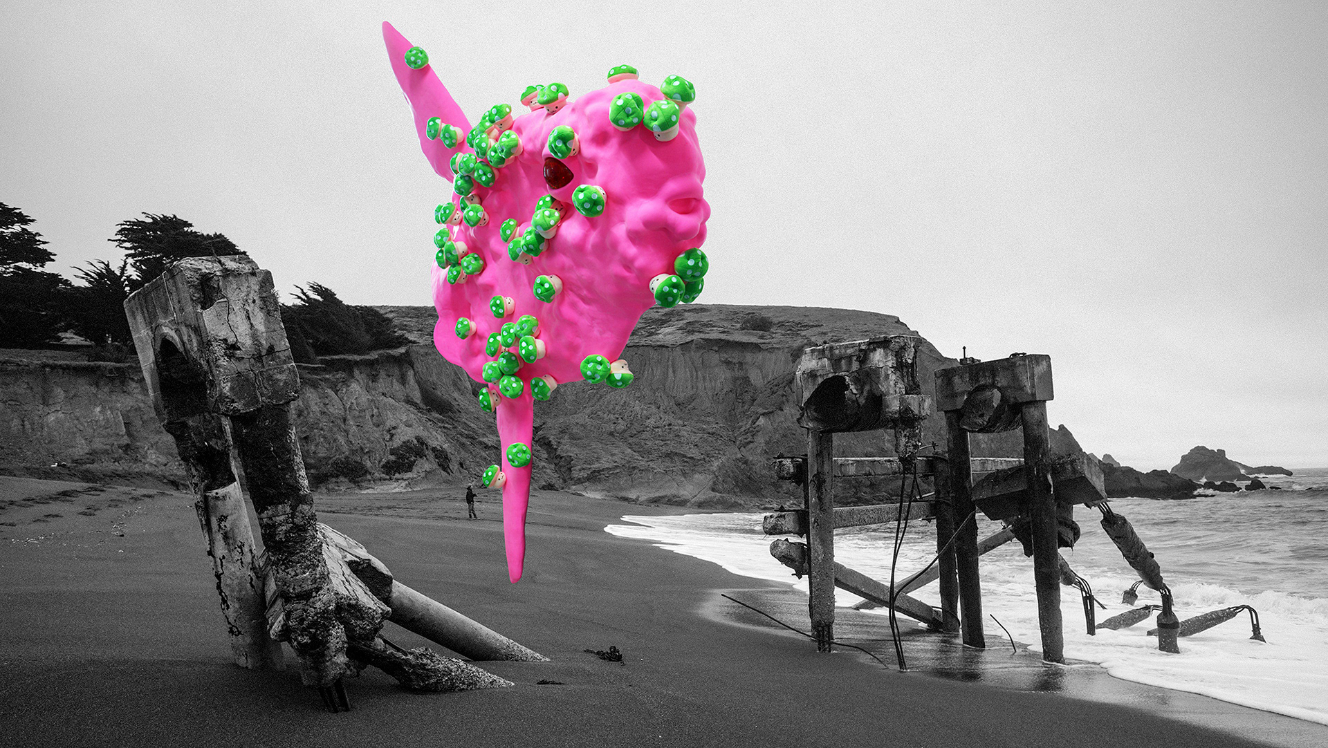 거대한 물고기의 몸 구석구석에 피어나는 버섯은 아름답고 유용해 보입니다. 이 버섯들은 사랑에 빠지듯 강한 필요를 일으키며 빠르게 번식하였습니다. 그러나 쉽게 사라지기도 하는 버섯은 신기루 같이 느껴지기도 합니다.