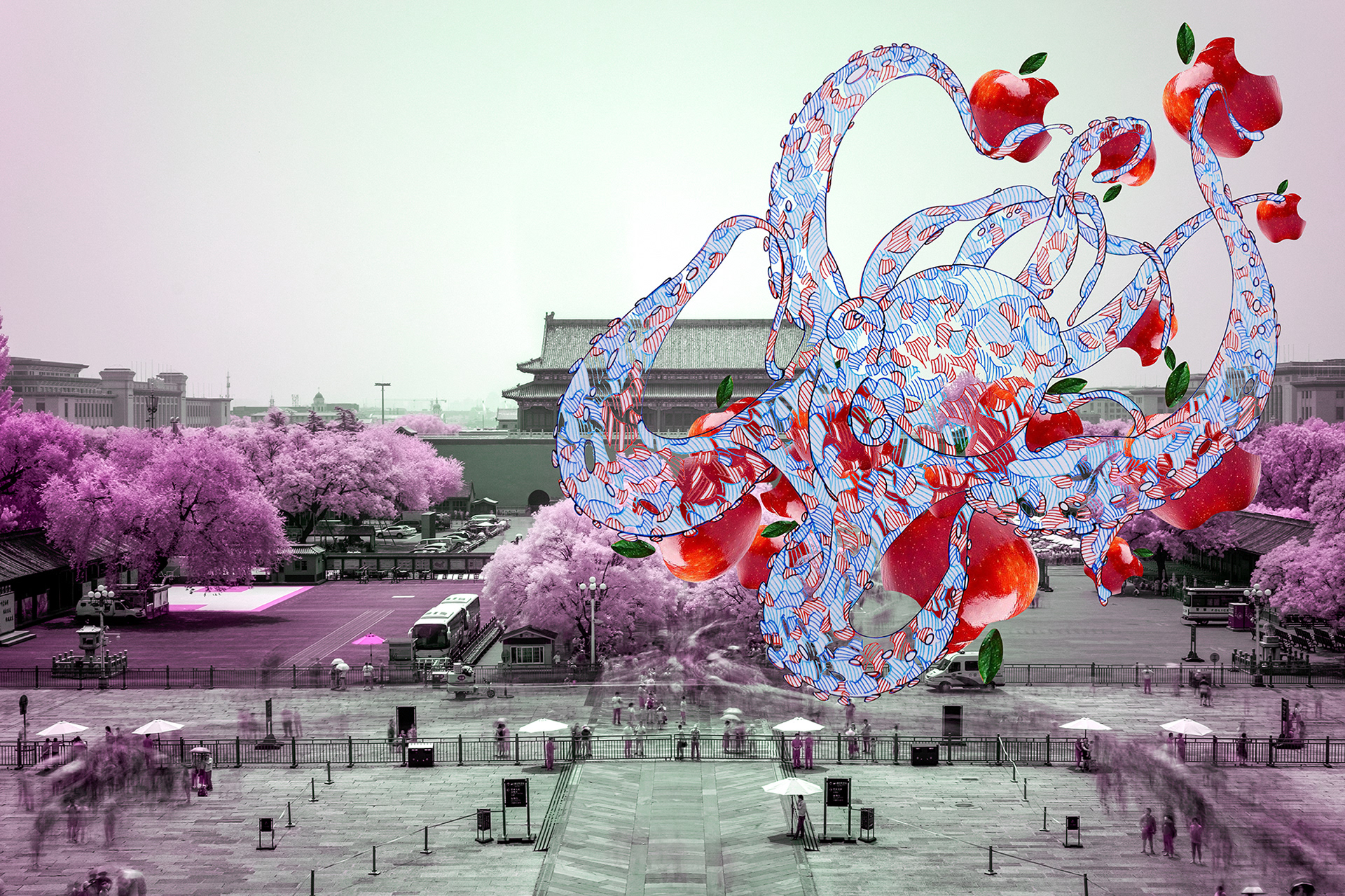 Octopus Eating an Apple III_(Collaboration with photographer Song Kwang Chan)_ digital pigment print_150*220cm (Installation of variable)_2017