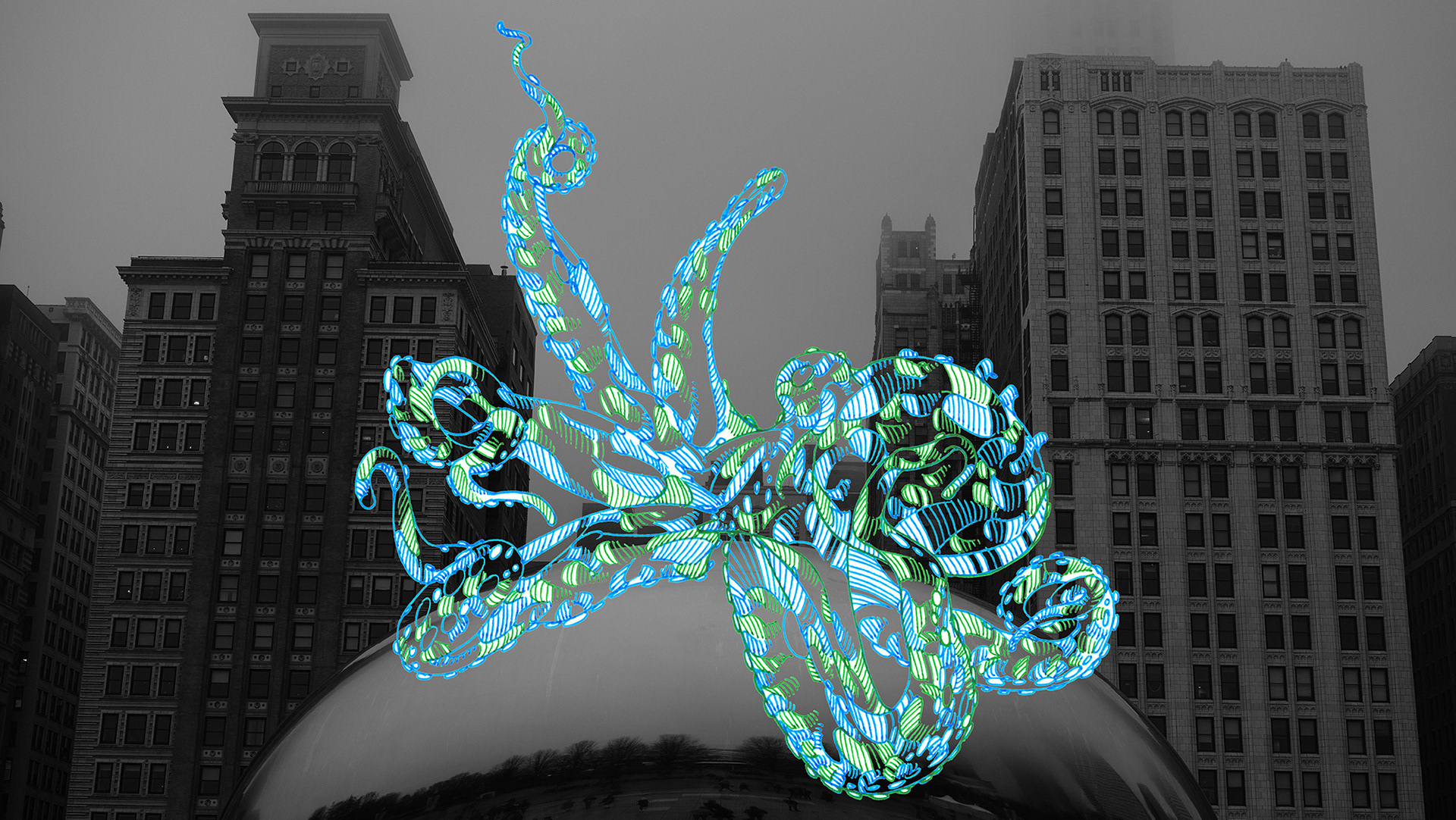 Octopus Eating an Apple I_ (Collaboration with photographer Song Kwang Chan)_ digital pigment print_150*220cm (Installation of variable)_2017