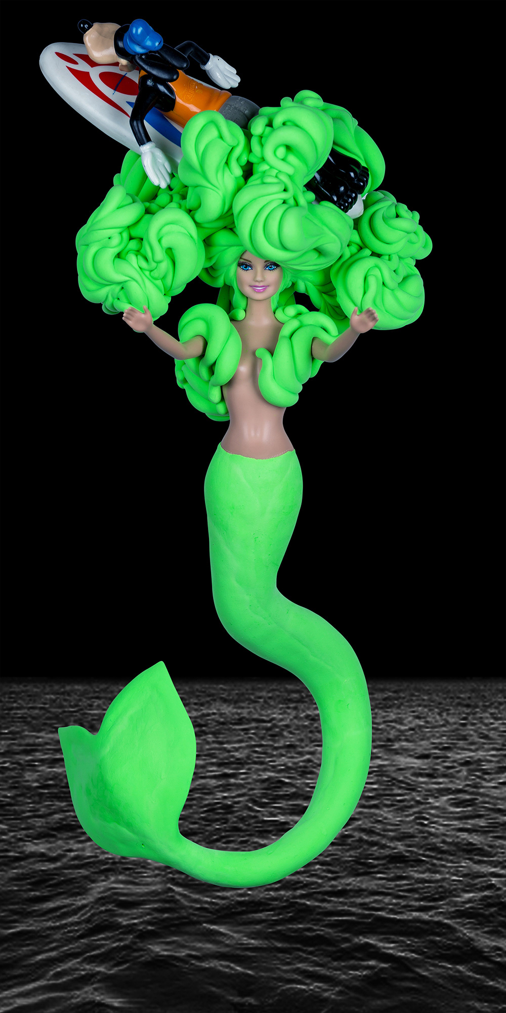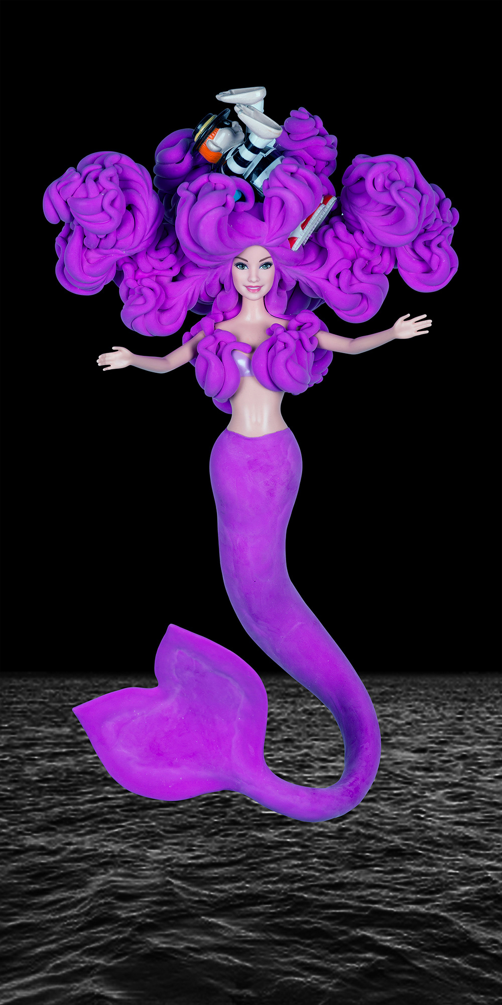Mermaid grasping a toy with hair/Idol growing in mind and head