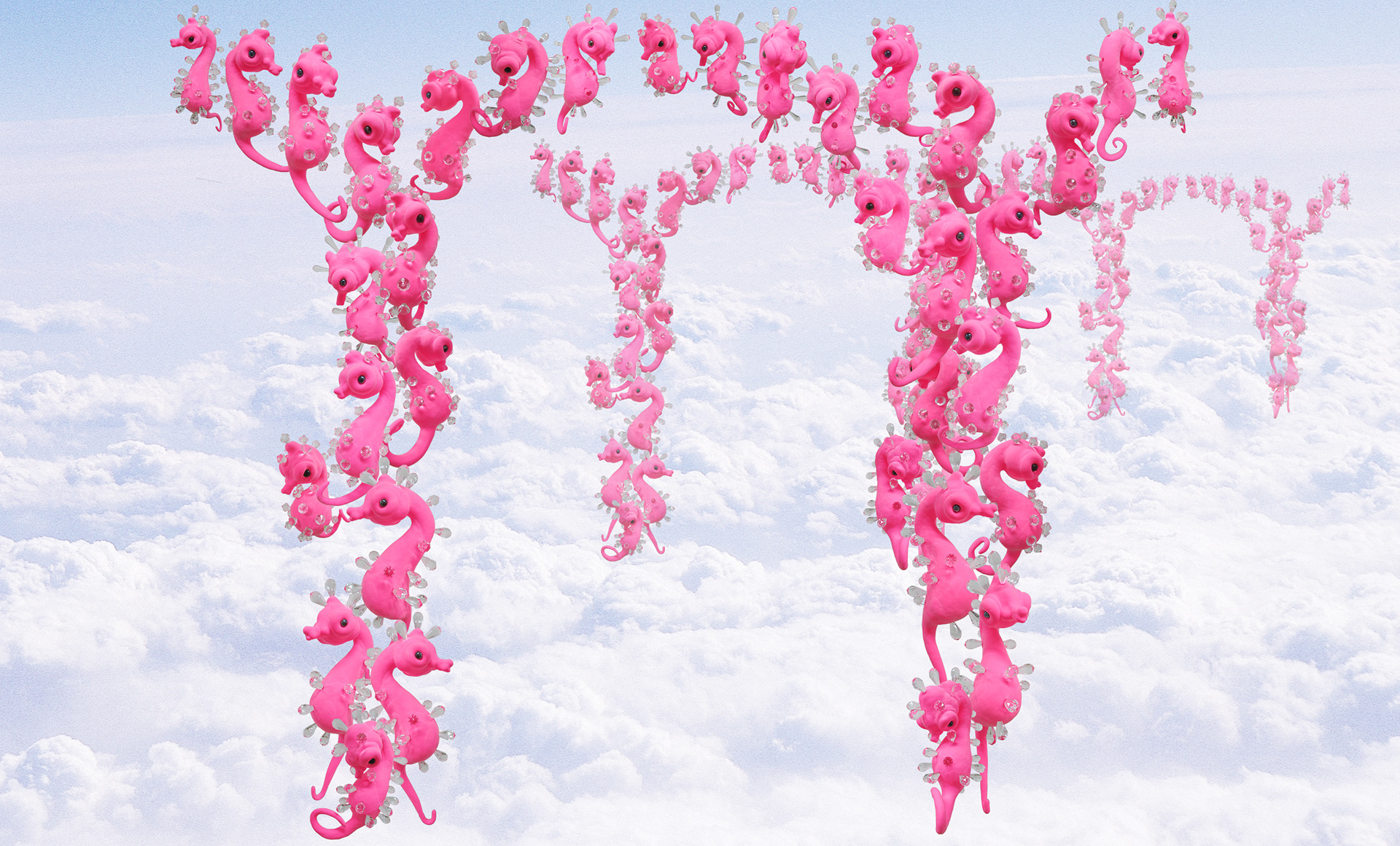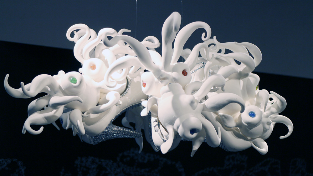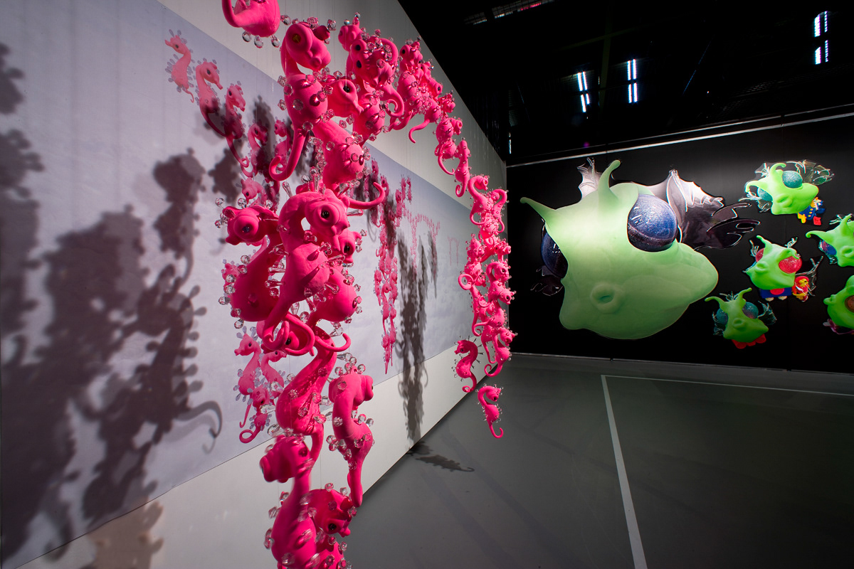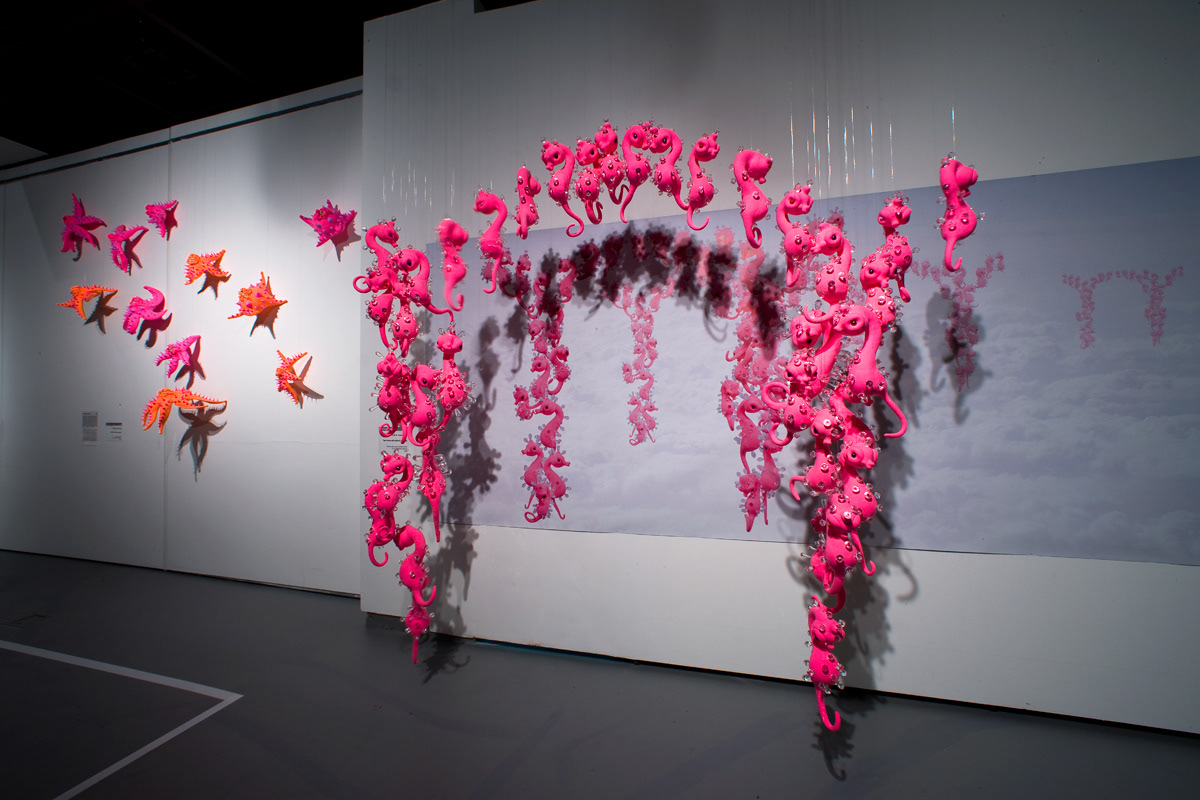 Horse fish of having glittering spines_polymer clay, epoxy, jeweled spines_17*15*28cm(each character)_2010