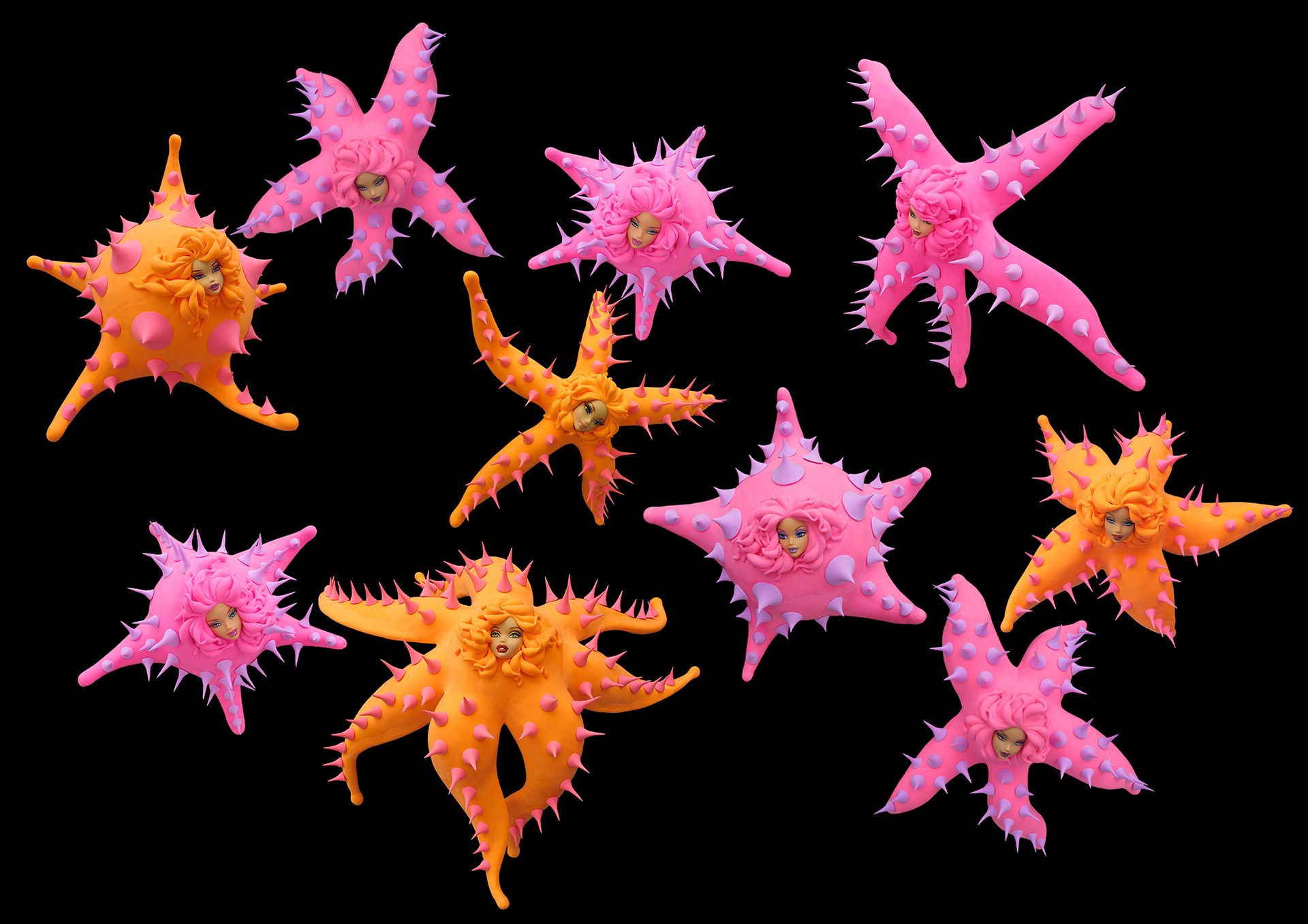 Starfish of having a doll face_polymer clay, dolls_22*30*24 cm(each character)_2010