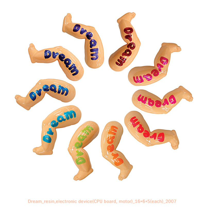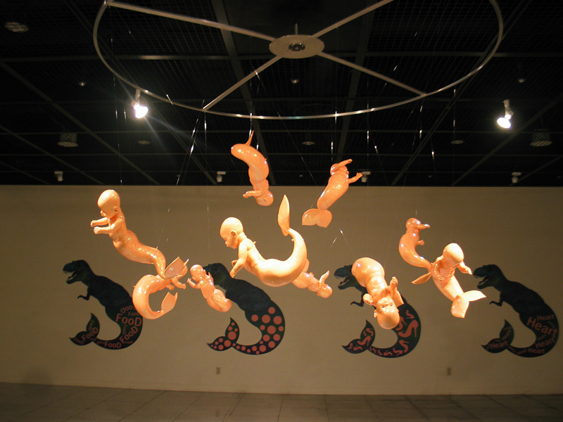In the exhibition space, mermaid babies are installed in a way that seems to be swimming in the water, and occupy the center of the exhibition hall. On the other hand, an adult mermaid of a real human size is arranged on the wall of the exhibition hall, and this adult mermaid is gradually expressed as a being forgotten by someone. This symbolically reveals the incomplete cognitive structure of the parent (mother) object perceived by the mermaid baby.
